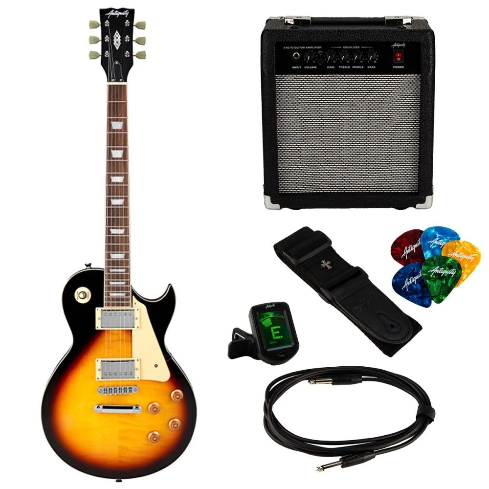 The essential selection for players beginning their journey into the world of guitars, the Antiquity LS1 Beginner Electric Guitar Package, Vintage Sunburst provides everything and more that players may need when learning the ropes.