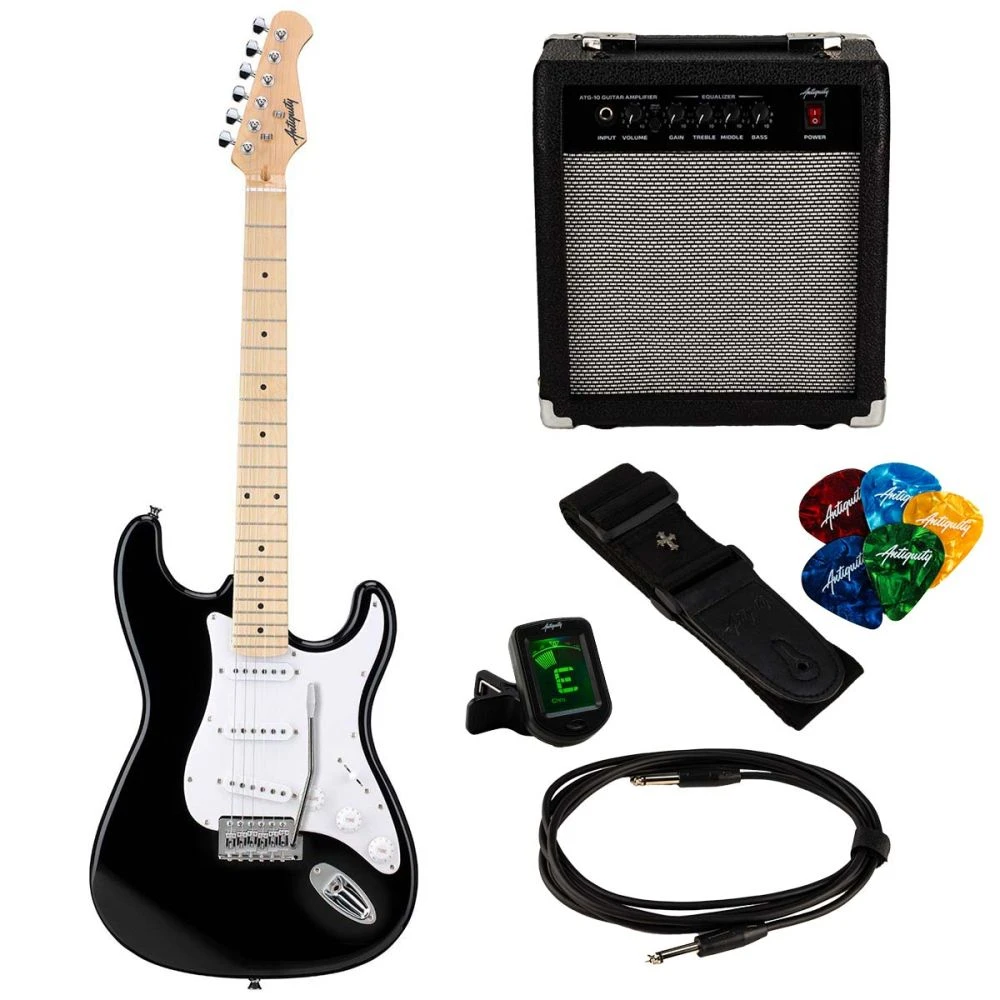 Antiquity ST1 Beginner Electric Guitar Package, Black Includes:
