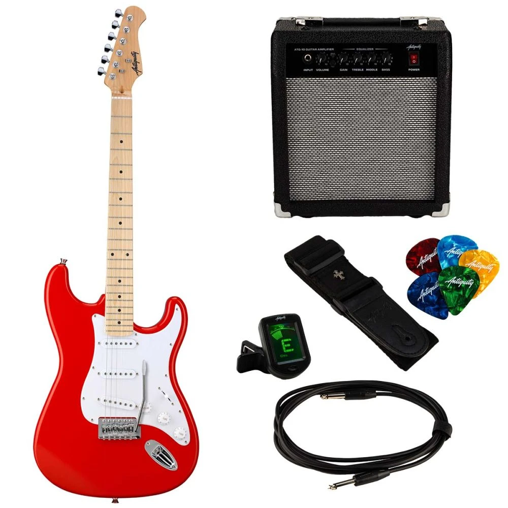 Antiquity ST1 Beginner Electric Guitar Package, Red Includes: