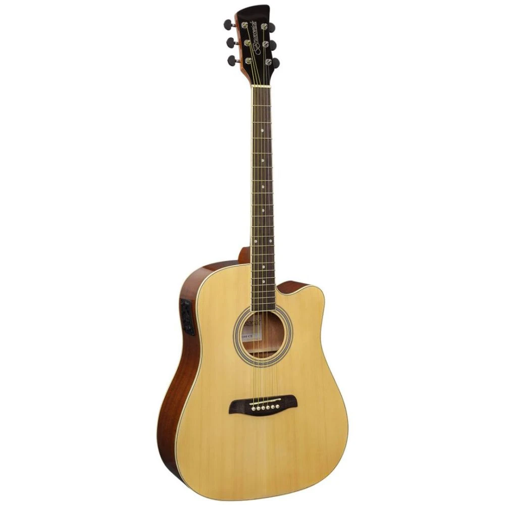 The Brunswick BD200CE model is a Dreadnought Acoustic guitar with a cutaway and pre-fitted electronics.