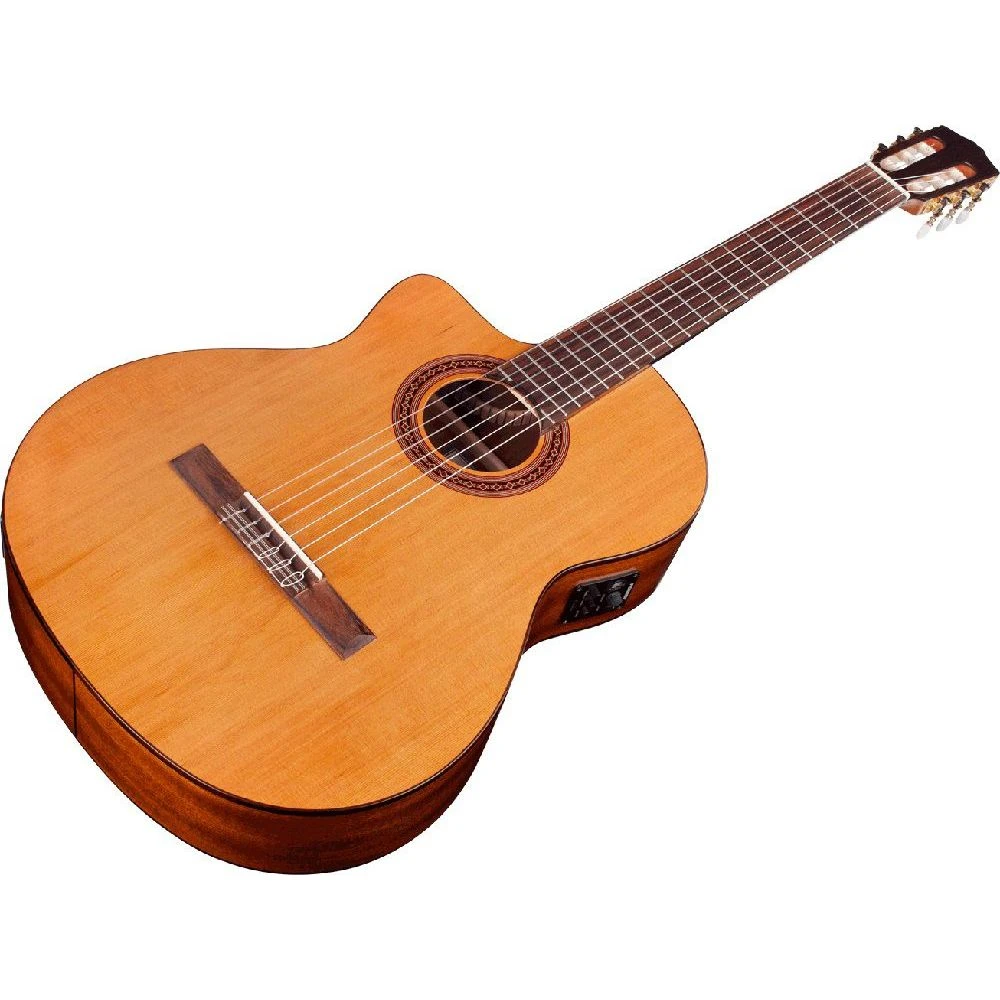 For that beautiful classical guitar tone the Cordoba C5-ce is crafted with a back and sides made from Mahogany, and a top piece carved from Solid Western Red Cedar.