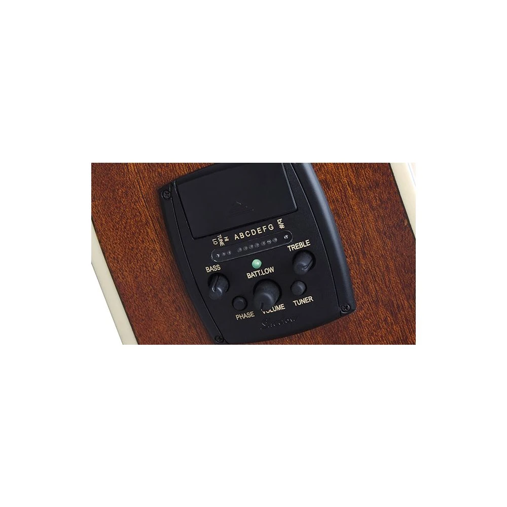 Fitted with a Shadow Performer Tuner pickup system, the natural acoustic tone is accurately transposed to your live sound. This guitar’s comfortable SlimTaper neck and elegant Venetian cutaway make fast runs in the treble range a breeze, and a gloss Natural finish gives this electro acoustic a vintage look.