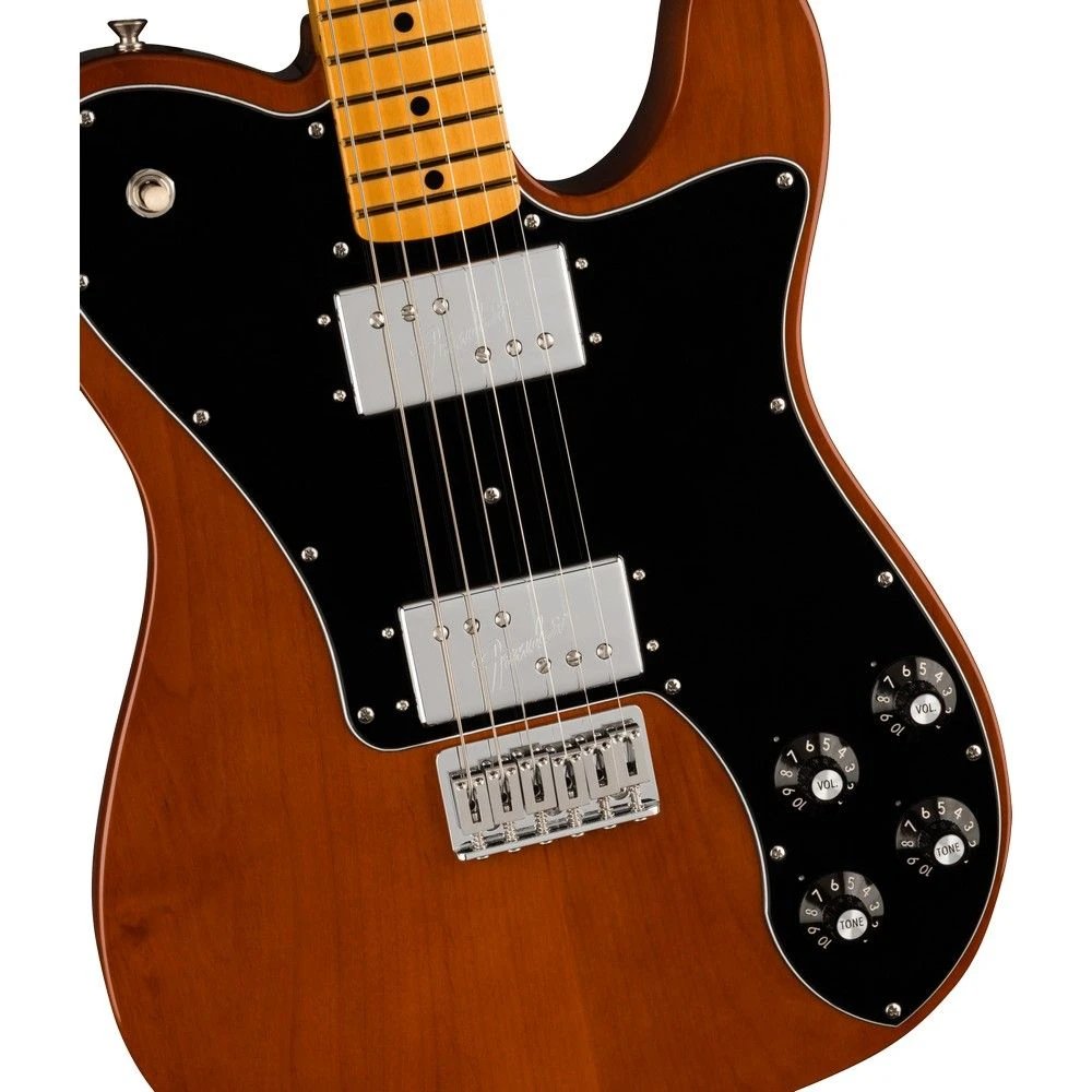 - A Faithful Recreation Of A Bold Tele Design – First introduced in 1972 as the new flagship Telecaster model, the Tele Deluxe was the first solid-body Telecaster to house two humbucker pickups. Just like the original 1975 release, this model features a large Strat-like headstock, and a pair of Humbuckers mounted to an elongated pickguard – each of which features independent Volume and Tone controls.