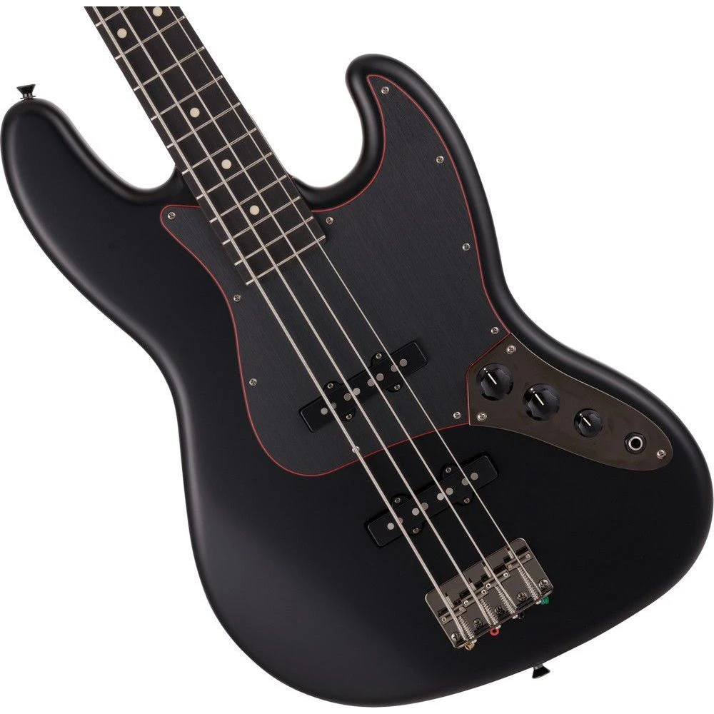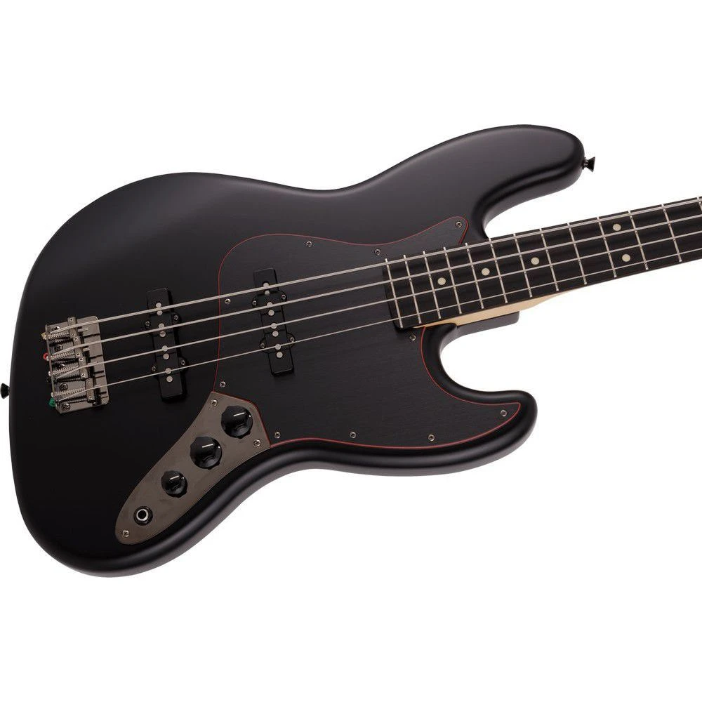 - Vintage Elegance Meets Contemporary Innovation – The Made in Japan Limited Hybrid II Jazz Bass Noir’s commanding satin black finish extends gracefully to the headstock, while the 3-Ply black pickguard, accentuated by a captivating red center layer, adds visual intrigue. The red metal logo on the headstock enhances its unique character. All metallic and plastic components blend seamlessly for a cohesive design aesthetic.