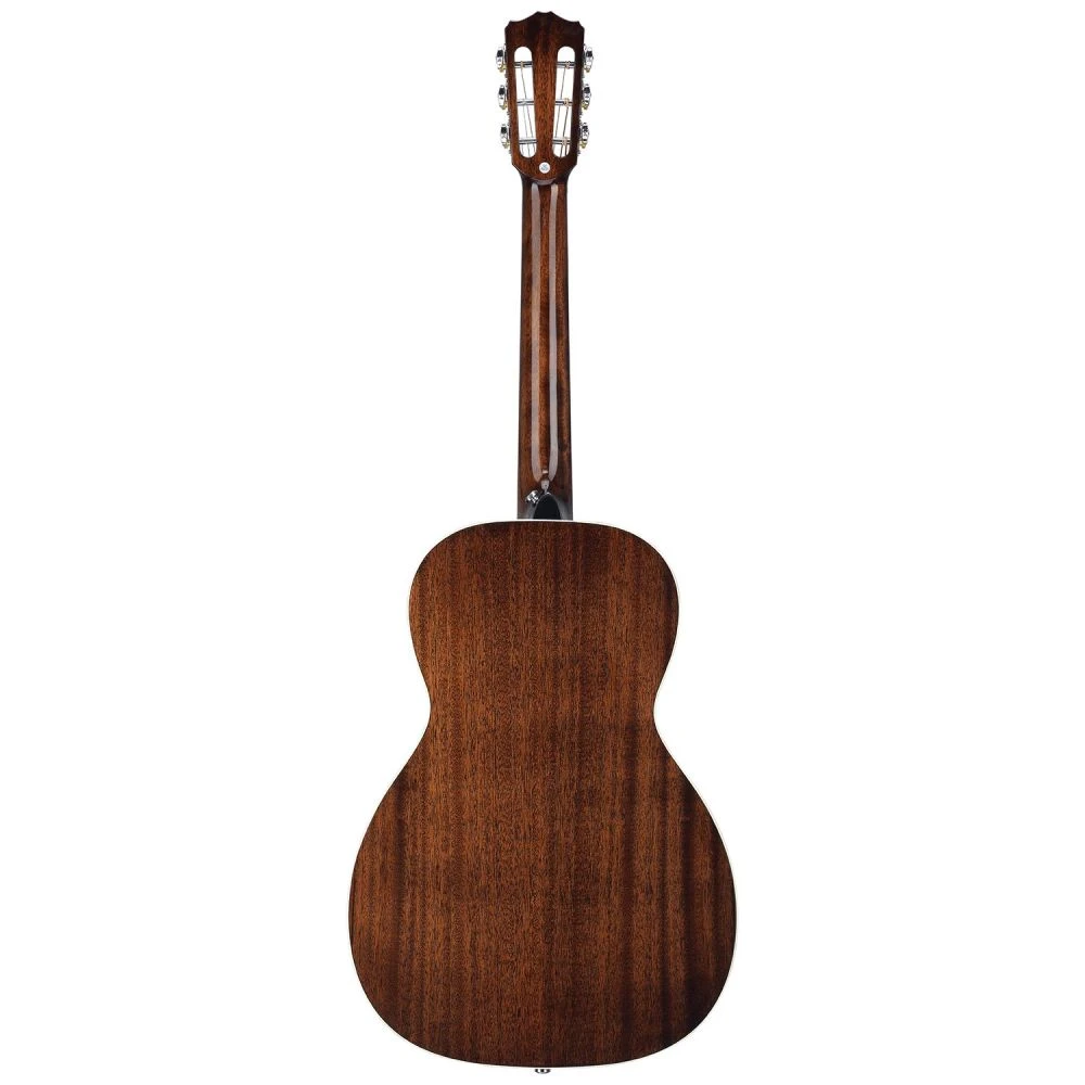 - Time-Honored Construction – The P3-E features a classic parlor-style body shape, making it comfortable to play, especially for smaller guitarists. The body is crafted with a solid mahogany top and layered sapele back and sides, resulting in a warm and natural tone that resonates beautifully. The neck is joined to the body at the 12th fret, enhancing the tonal warmth, punch, and dynamics of the instrument. The guitar is also accented with wood binding, adding a touch of elegance to its overall appearance.