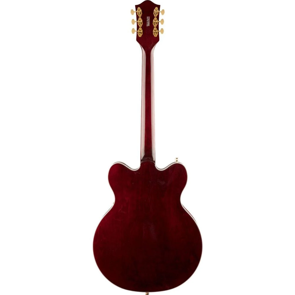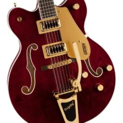 The G5422TG Electromatic Classic Hollow Body Double-Cut with Bigsby and Gold Hardware features a laminated maple body with vintage-inspired perimeters and refined arches, as well as all-new trestle block bracing to help reduce unwanted feedback. By increasing rigidity and contact between the top and back of the body, the new trestle block design also results in the sound having a faster attack with more focus, snap, and increased sustain.