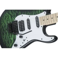 Adding to the awesome aesthetic of this Adrian Smith signature guitar is a Quilted Maple top which shows up beautifully through the transparent green finish.