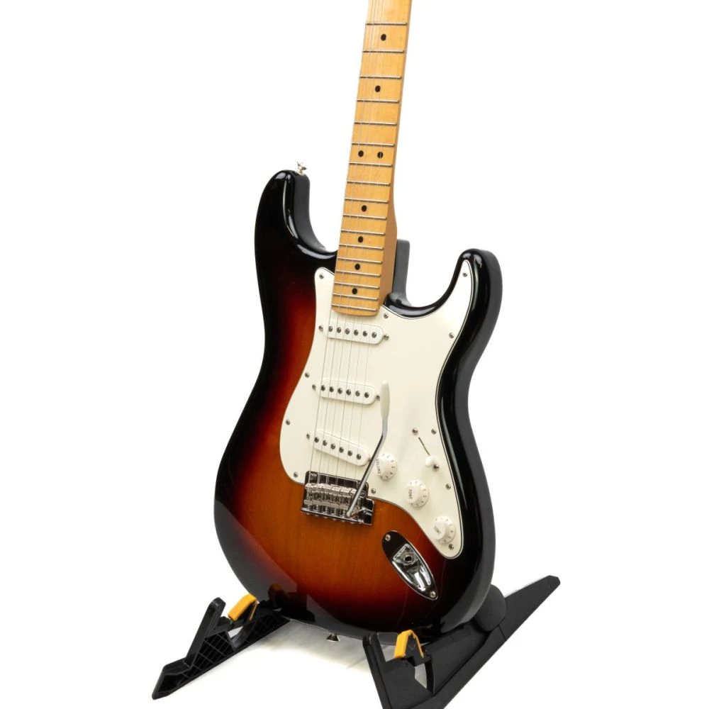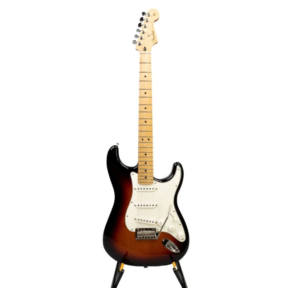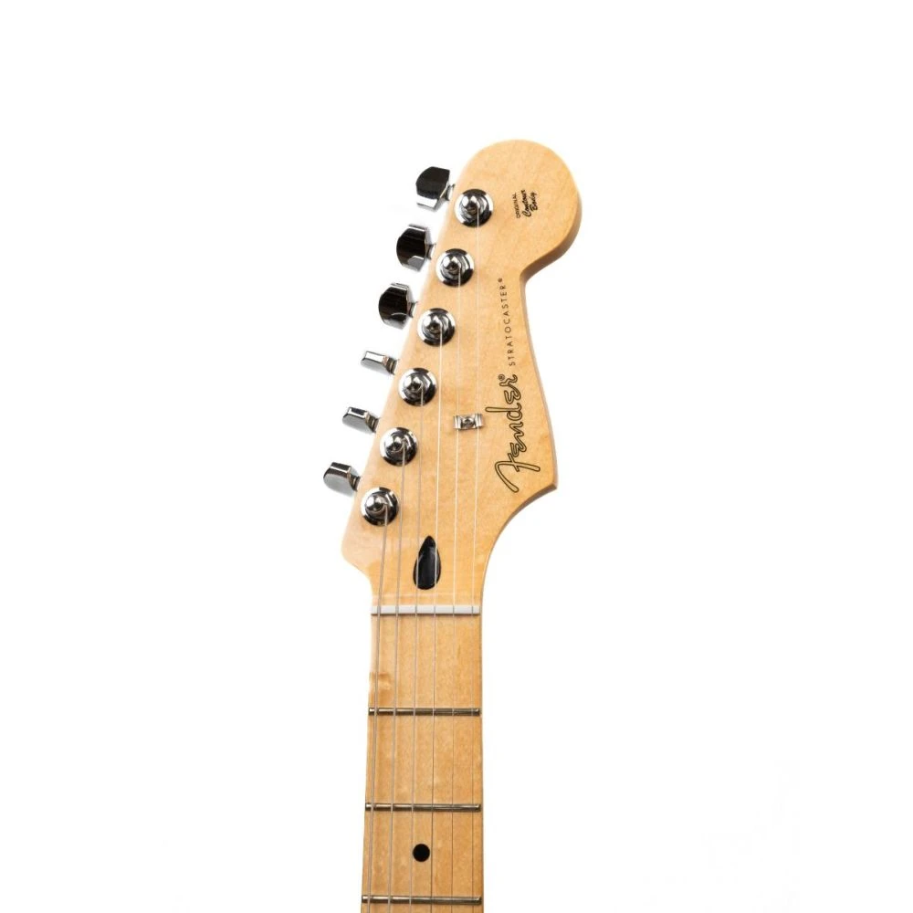 The Fender Player Stratocaster, seen here in a classic 3-Colour Sunburst with a Maple fretboard, represents a new standard for Fender.