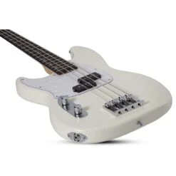 Seen here is the Olympic White Schecter Banshee Bass LH; a left handed shortscale bass guitar offering awesome tone, playability and style.