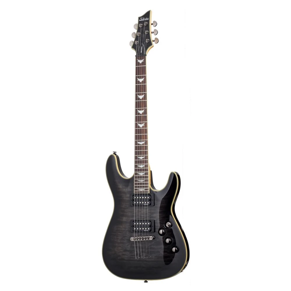 Schecter Omen Extreme-6; an awesome guitar that is loaded with features. Seen here in a fantastic See-Thru Black finish which really shows off the Quilted Maple arched top, the Omen Extreme-6 is great looking and great sounding; a perfect guitar for the modern metal or hard rock guitarist.