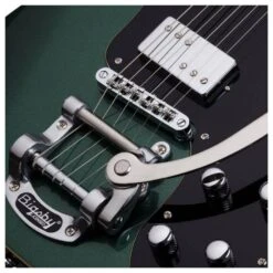 A pair of Schecter Diamond SuperRock custom alnico pickups are installed into this green machine. Offering a warm output with tight bass, rounded mids and bell-like highs. Perfect for a range of musical genres but work really well for rock, jazz and blues.
