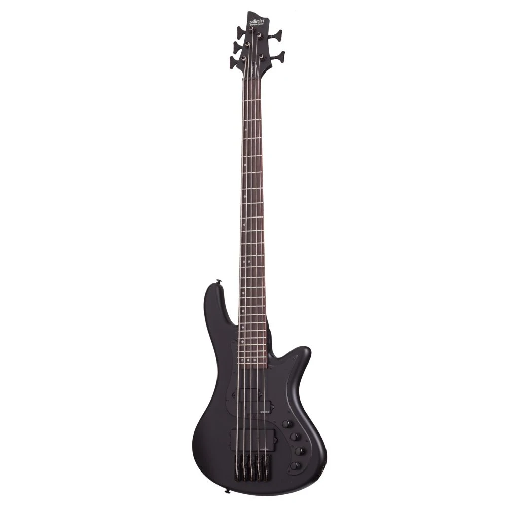 The Schecter Stiletto STEALTH-5 Bass in Satin Black is a 5-string, active bass guitar equipped with a pair of Schecter Diamond humbuckers, for added power and clarity.