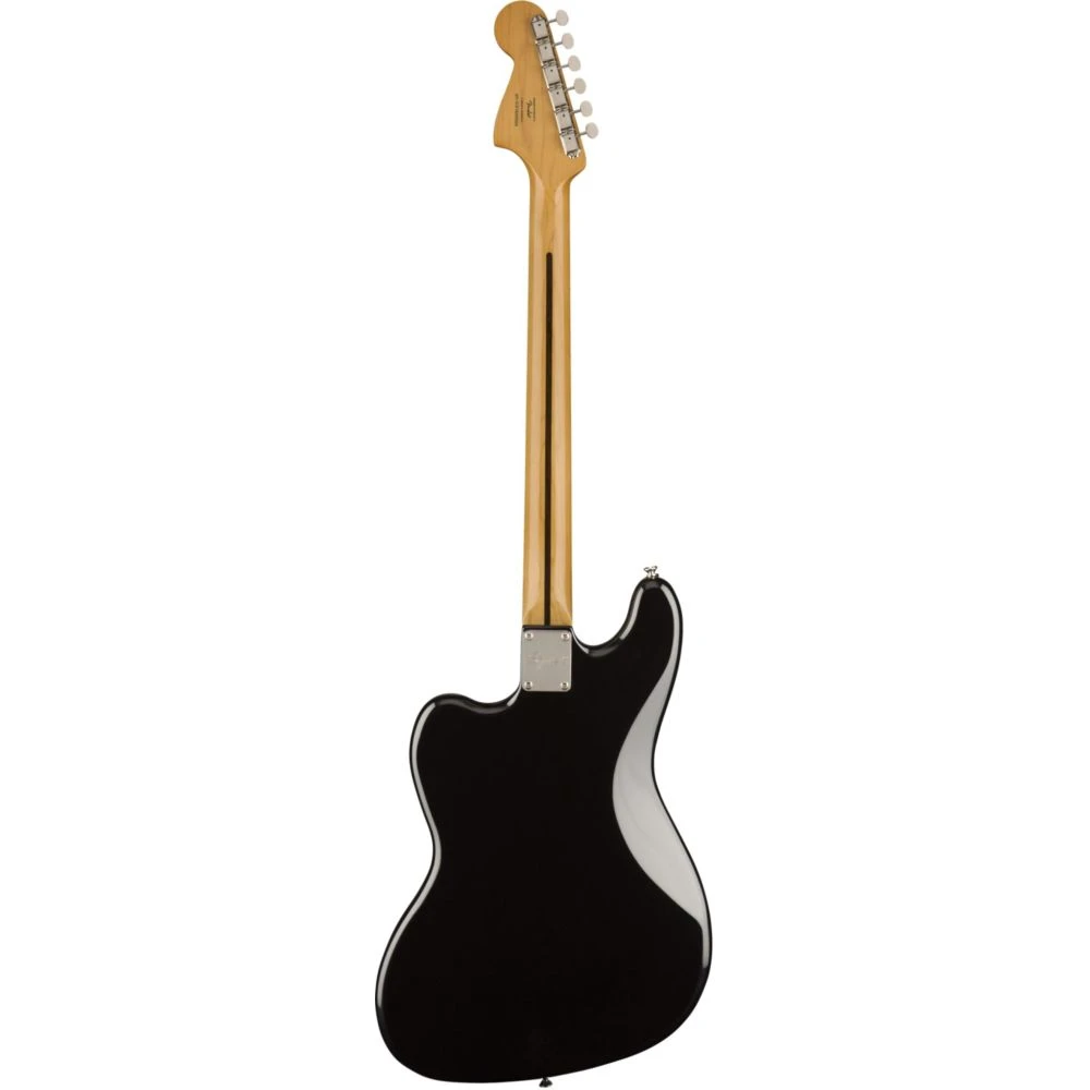 - Comfortably contoured, Jaguar-style poplar body with a Black finish and vintage-style shell pickguard