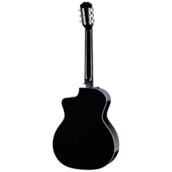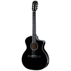 The Taylor 214ce-N Deluxe Electro Classical Guitar in striking black delivers both visual sophistication and exceptional sound quality.