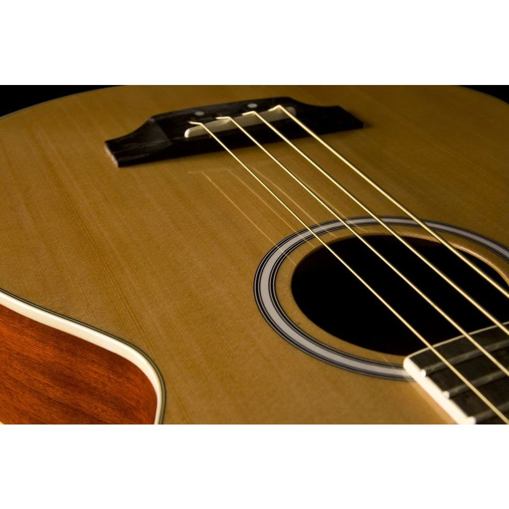 The Washburn AB5K electro-acoustic bass guitar has been constructed to give you great sound and playability. The body features a spruce top with mahogany back and sides with a cutaway to allow easy playing of the higher frets. Great for bass solos and more melodious bass lines. For added comfort and ease of portability, the body of the AB5 acoustic bass is relatively small. Fitting somewhere between a full-on dreadnought and a skinnier thin-line style bass, the AB5 has the best of both worlds.