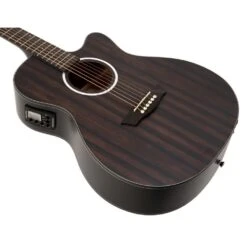 - Grand Auditorium-Style Body – a popular acoustic shape with modern players, the Grand Auditorium offers a big voice but is physically smaller than a full-sized dreadnought. In addition to this, the Washburn Deep Forest Ebony Ace features a soft upper-bout cutaway, offering increased playability and easy upper-fret access